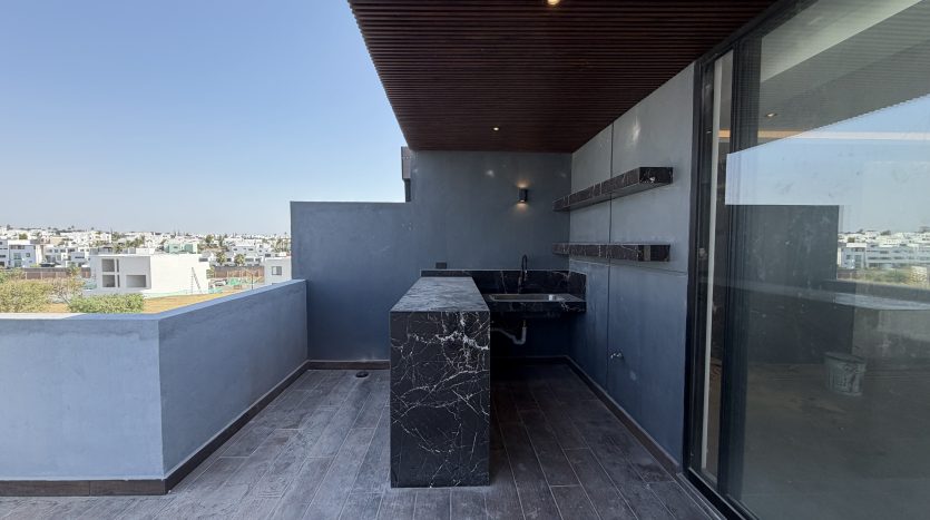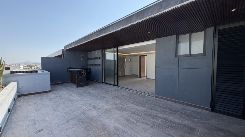 Sala de juegos, medio baño, roofgarden con barra y tarja, recámara secundaria 4 con closet y baño, área de lavado y patio de tendido.