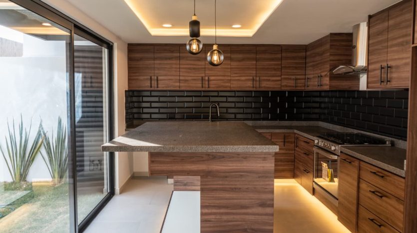 - Cocina equipada con isla, alacena y placa de granito