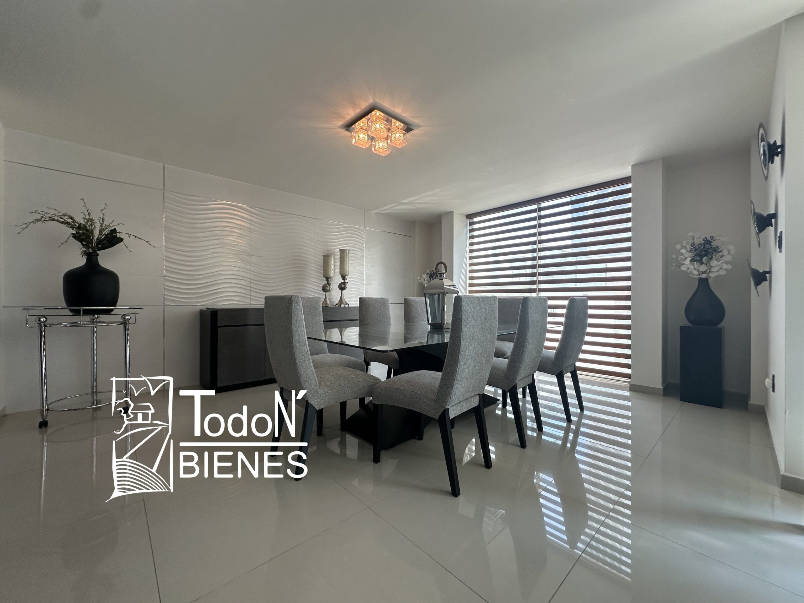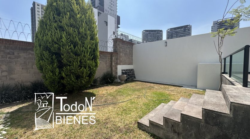 Vestíbulo, sala doble altura, comedor, cocina integral con barra desayunador y placa de granito, alacena, medio baño, pasillo de servicio, doble terraza al jardín, cuarto de lavado, cuarto de servicio y estacionamiento techado para 2 autos.