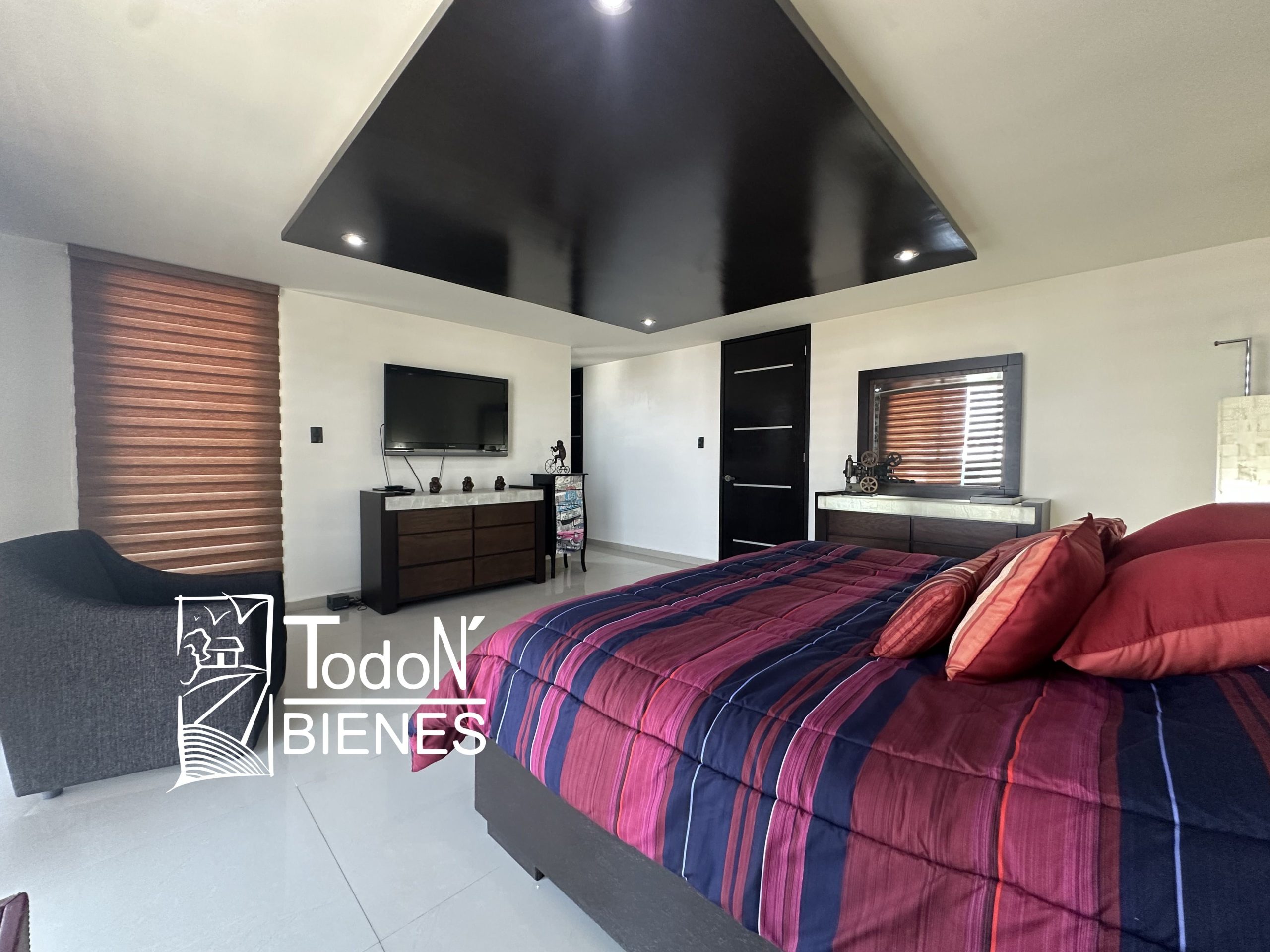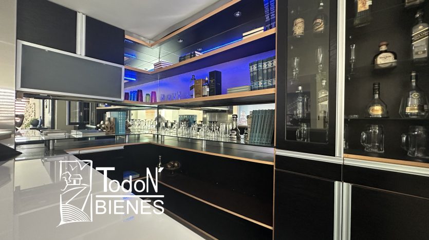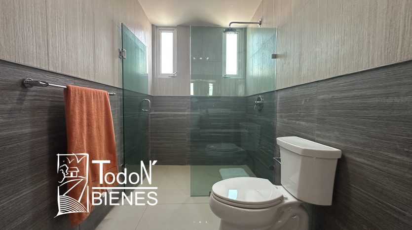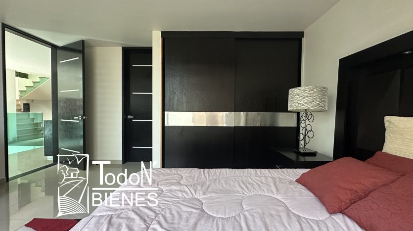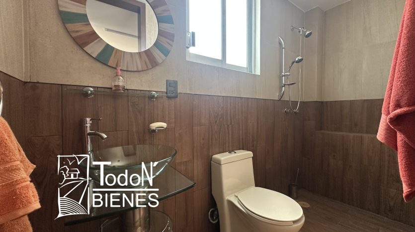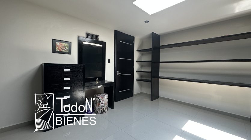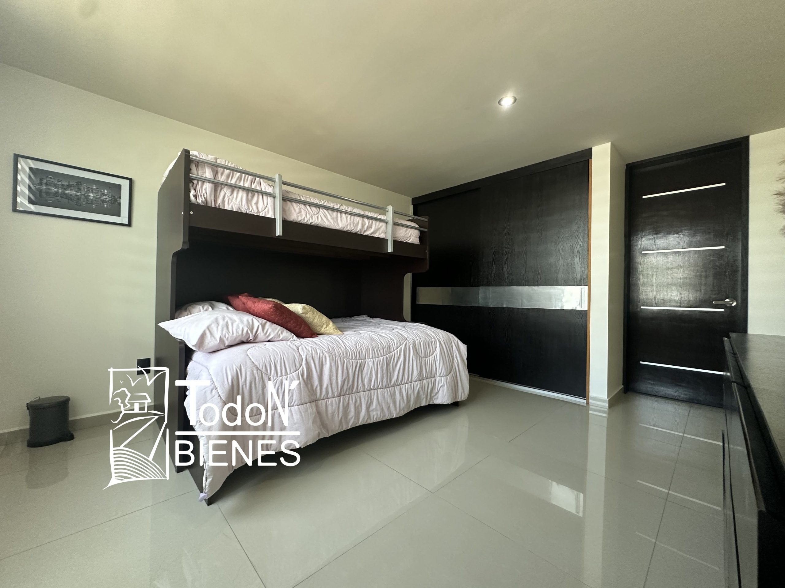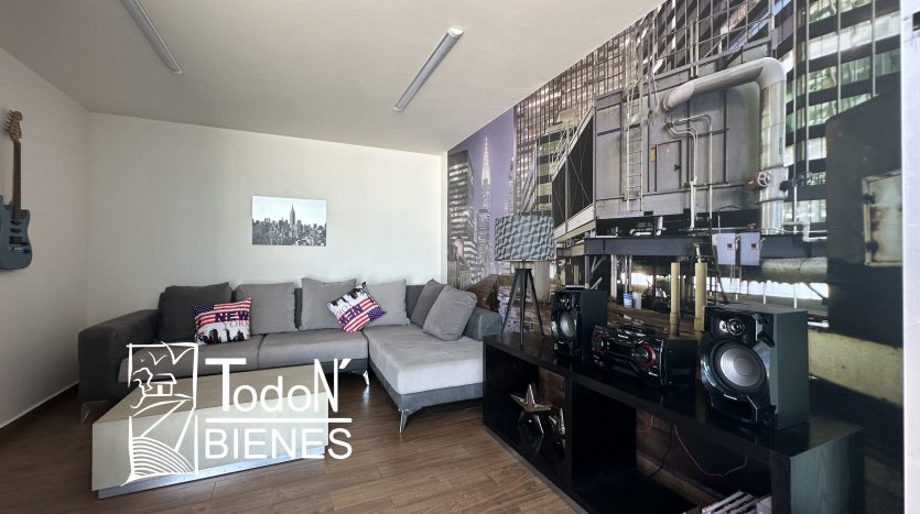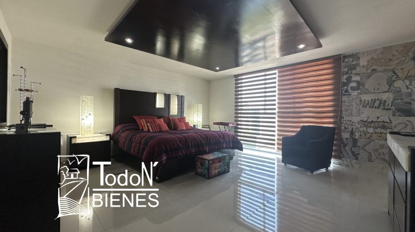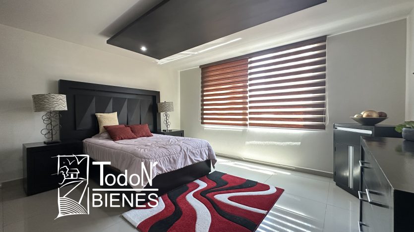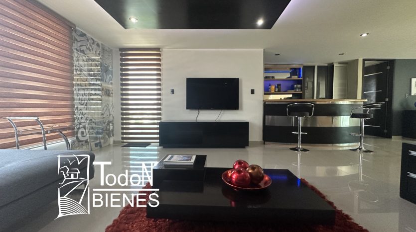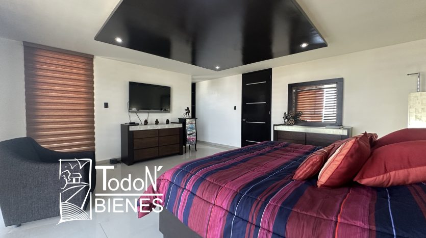 Recámara secundaria 1 con closet, recámara secundaria 2 con closet, baño completo compartido, bar, sala de TV con balcón.
