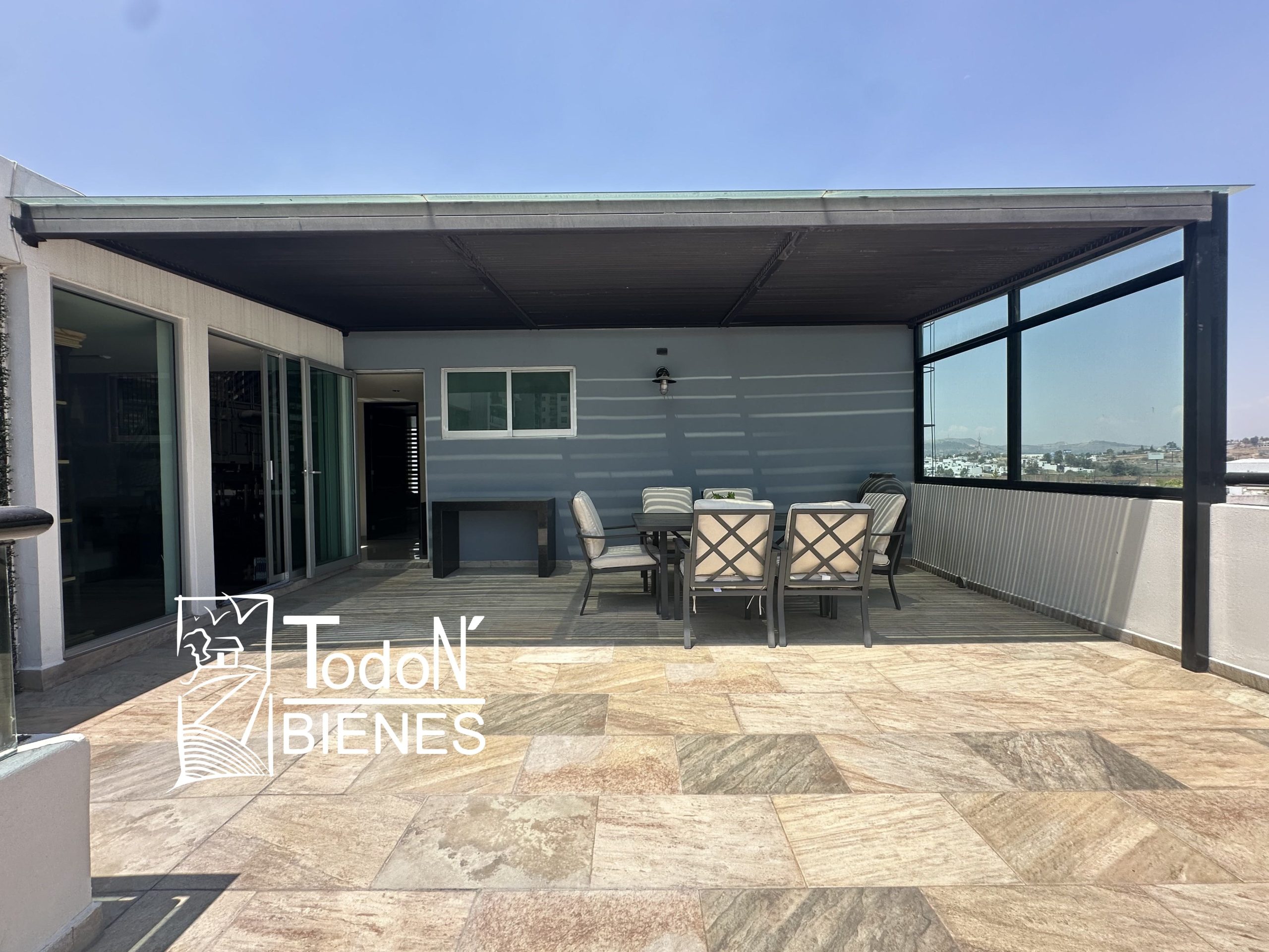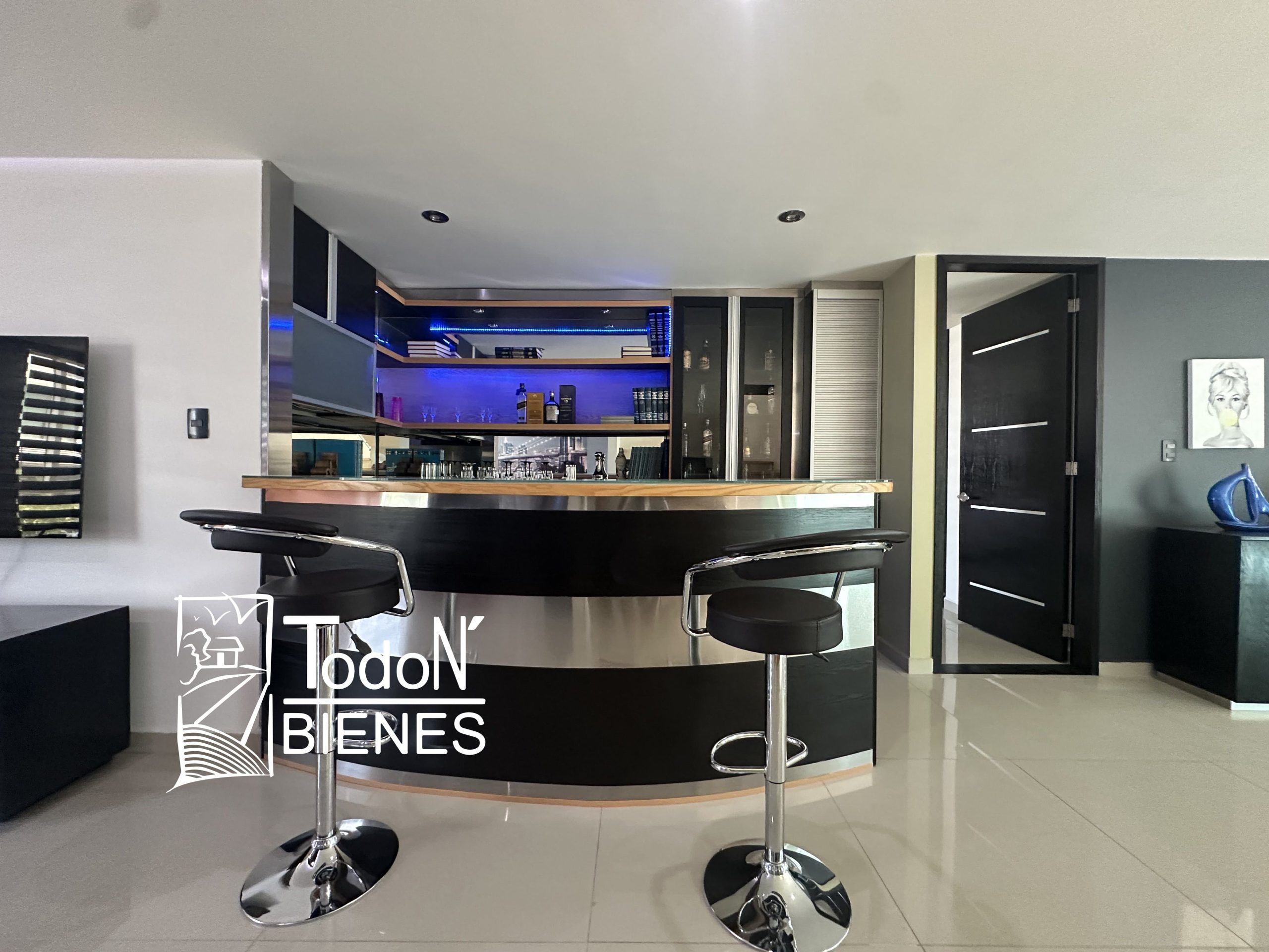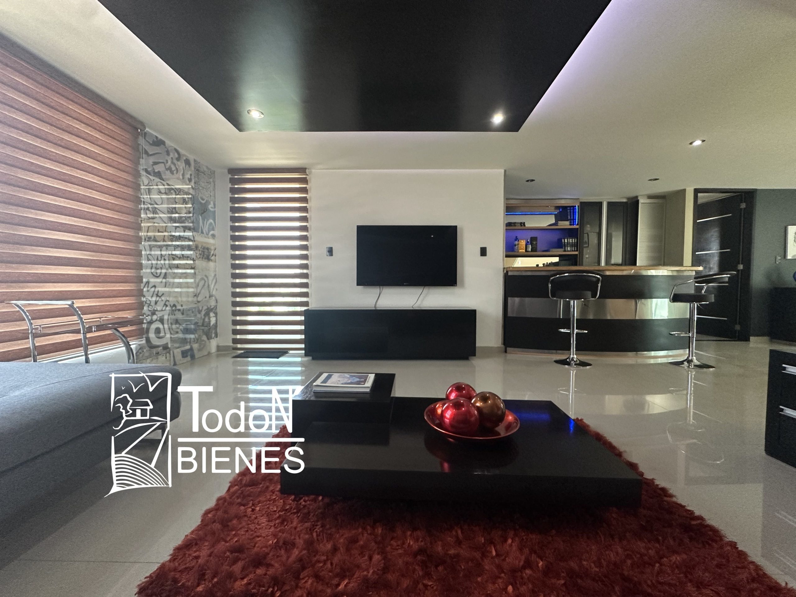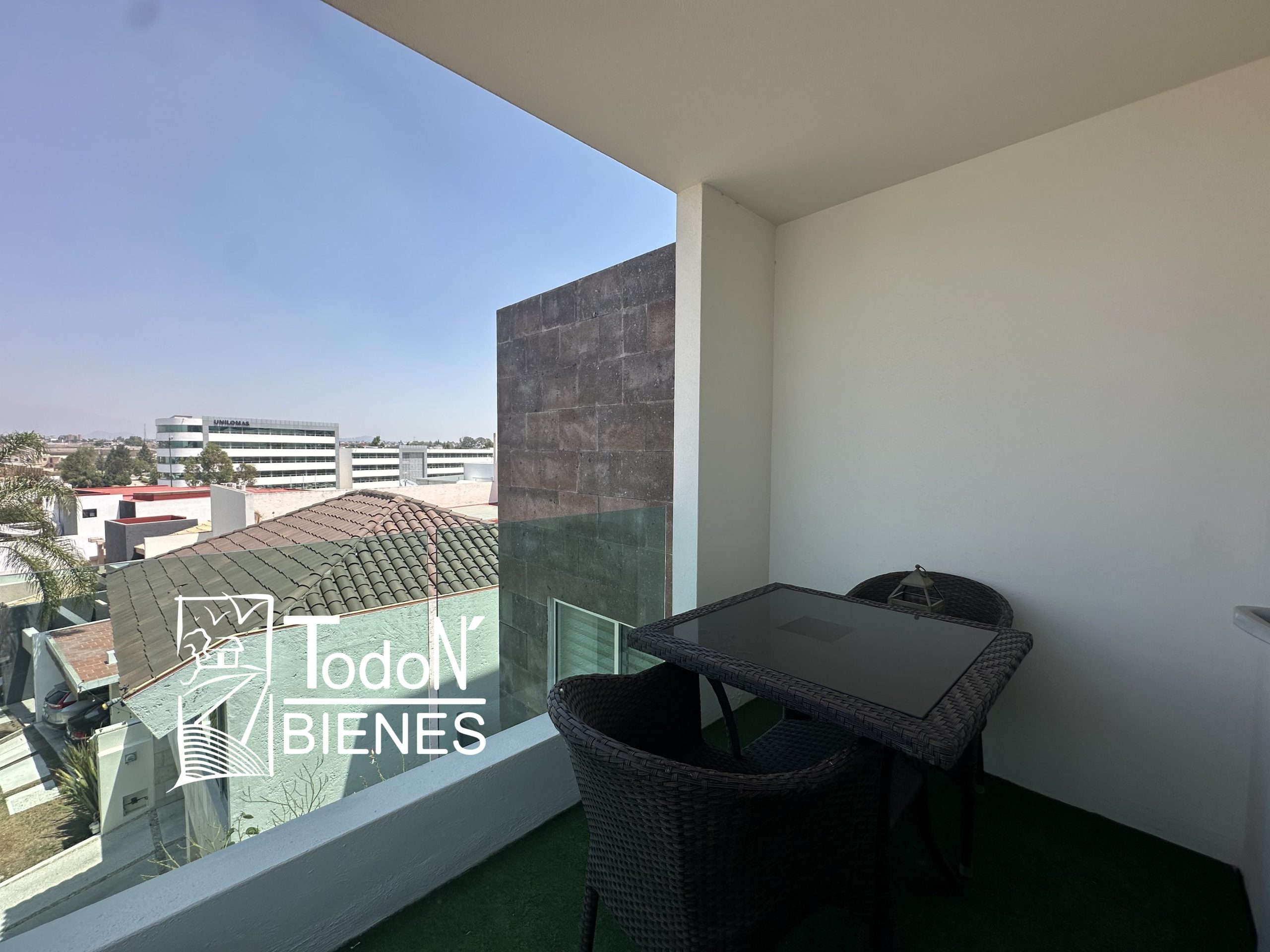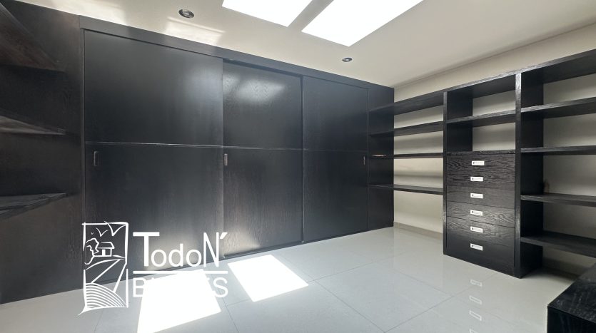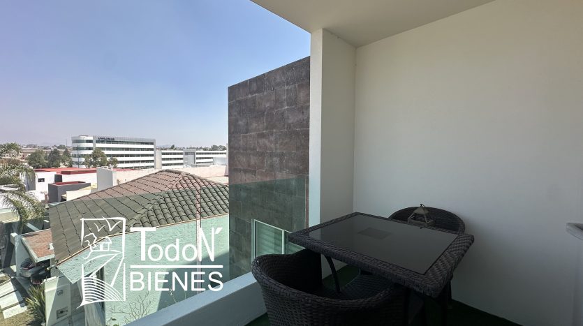 Recámara secundaria 1 con closet, recámara secundaria 2 con closet, baño completo compartido, bar, sala de TV con balcón.