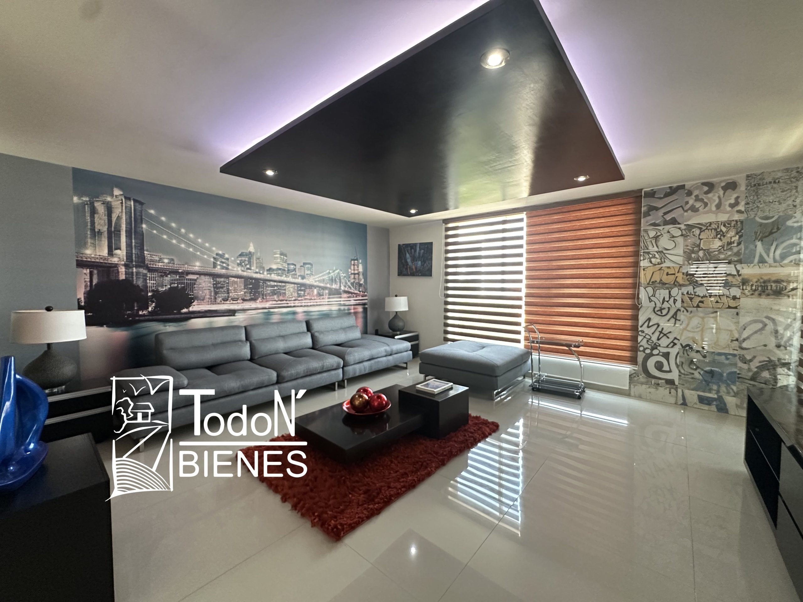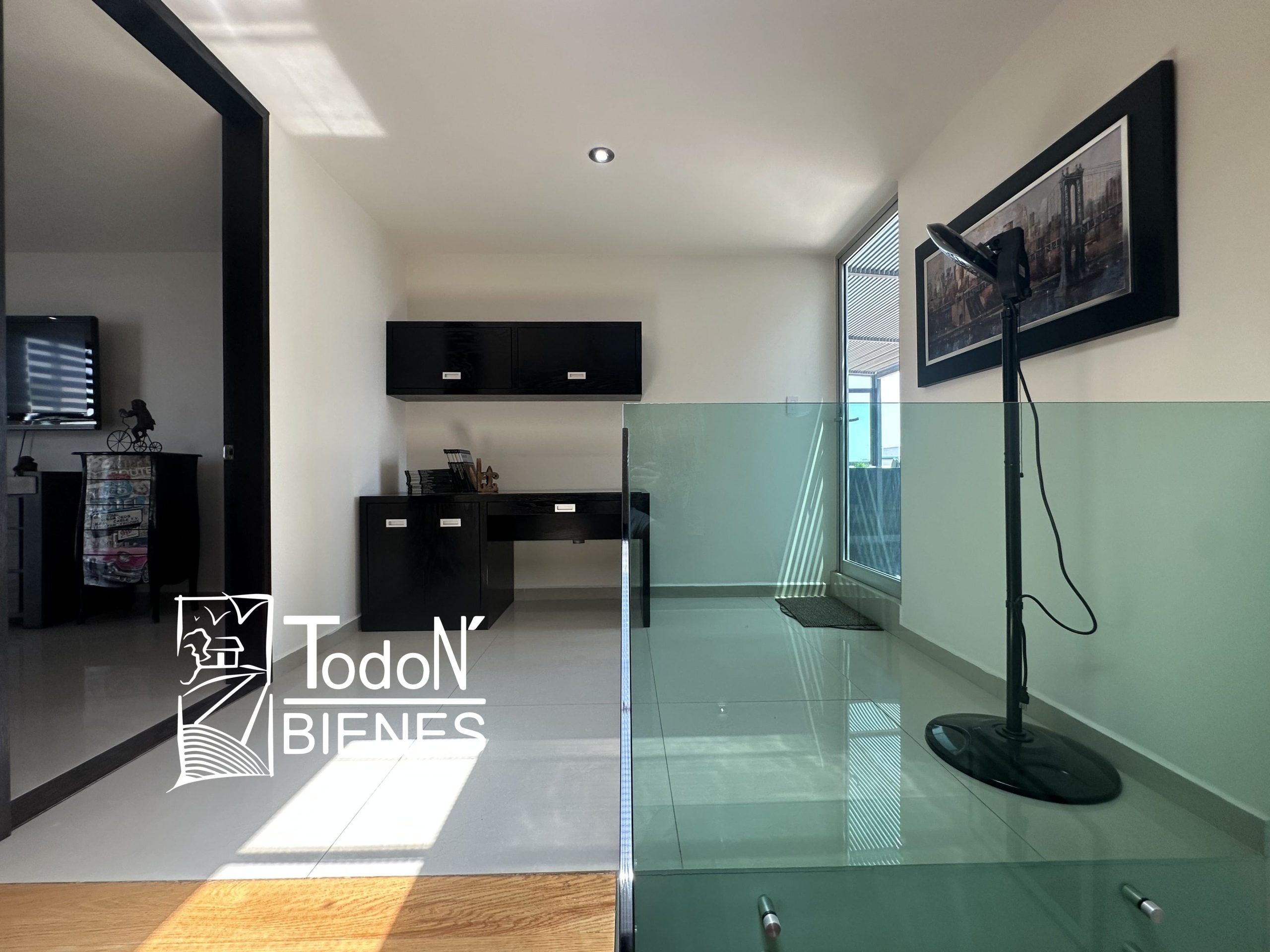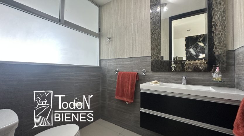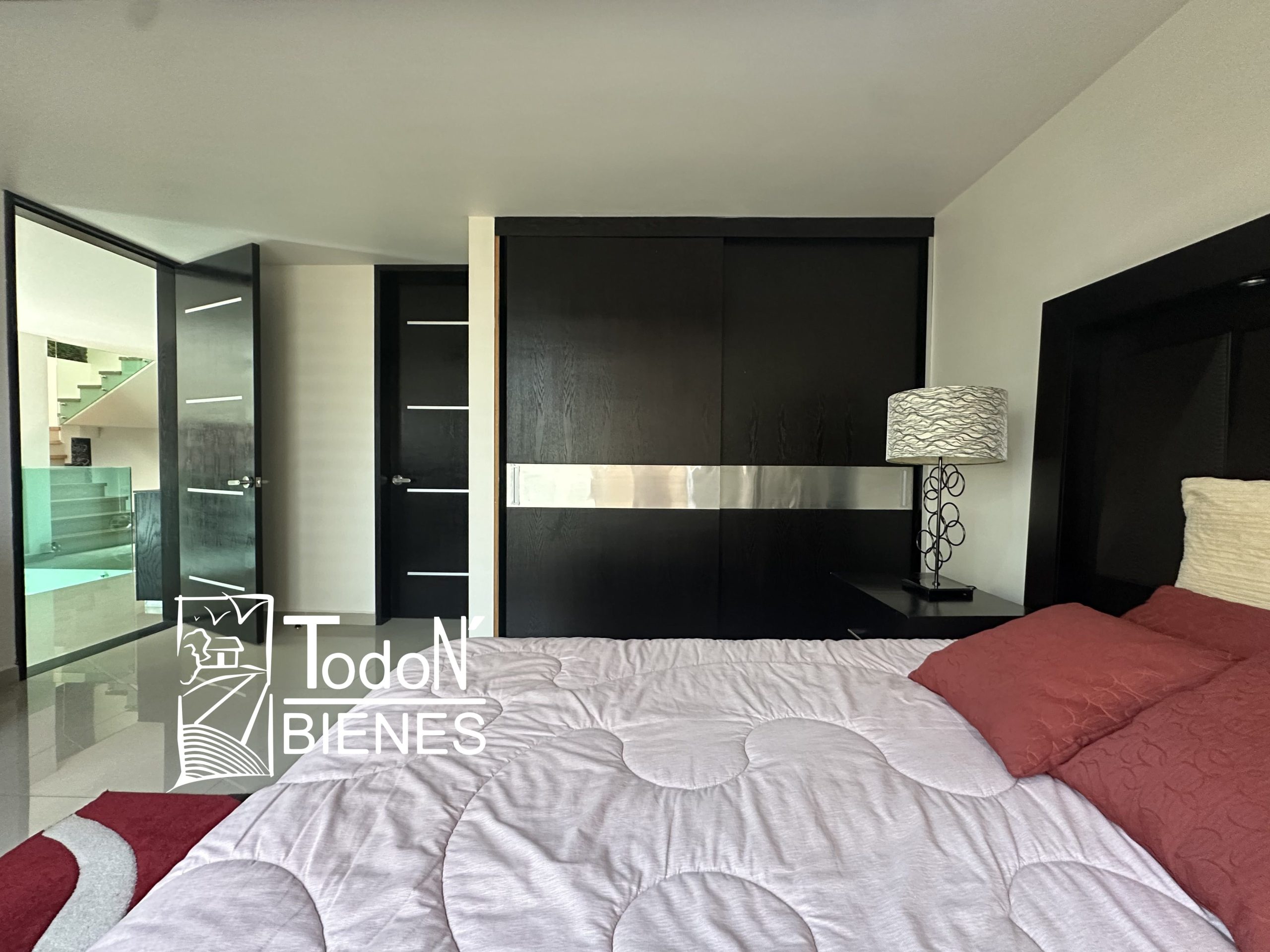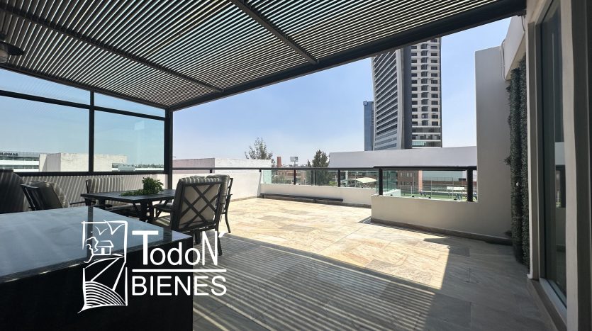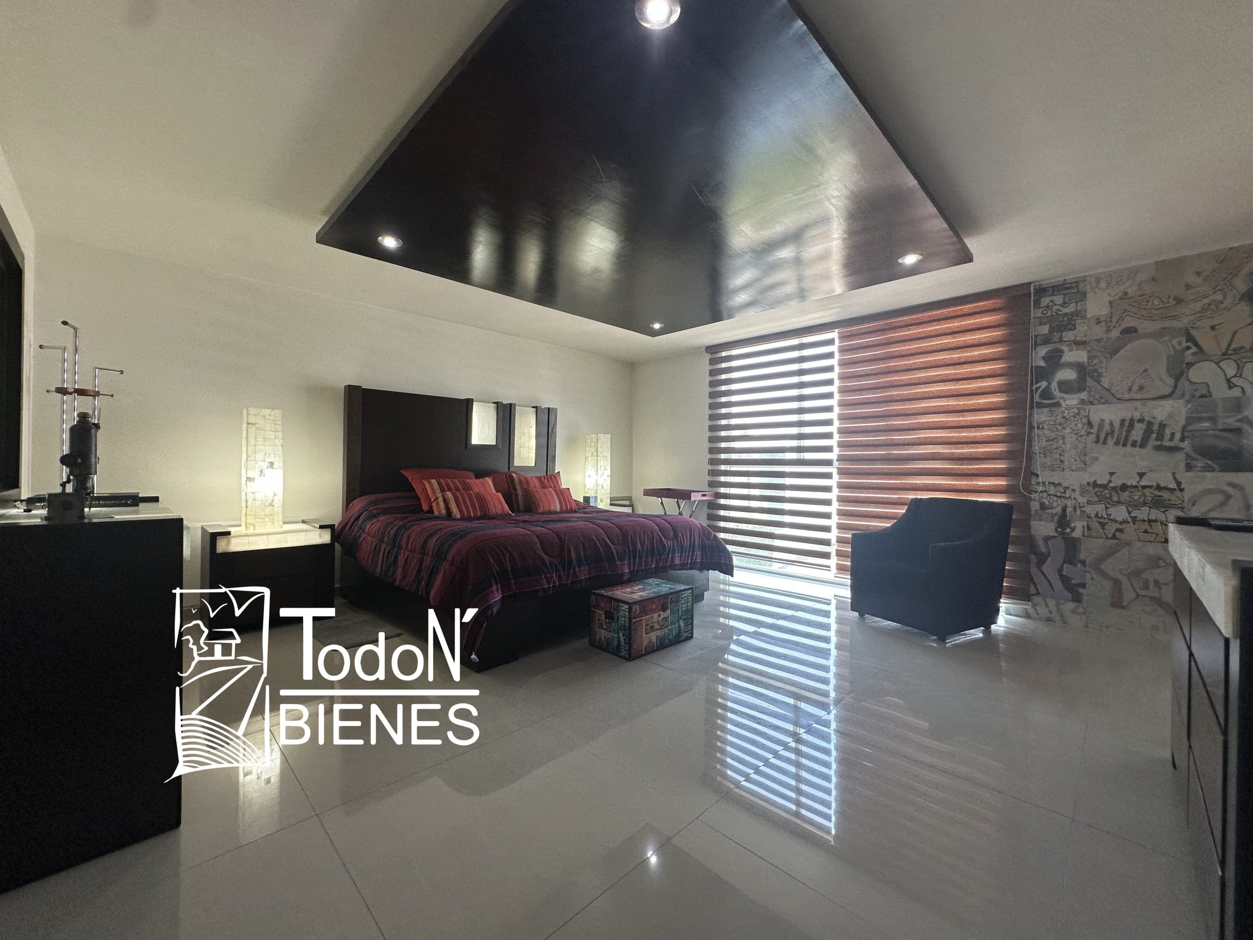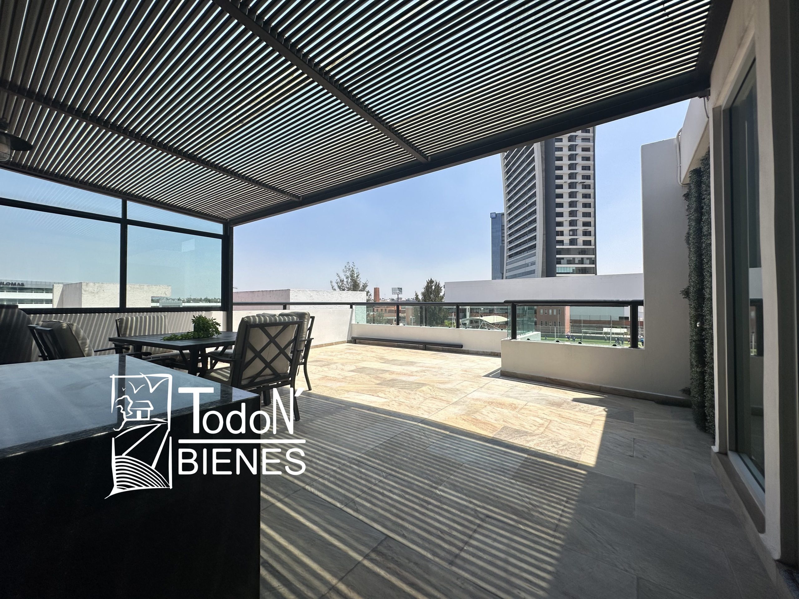 Recámara secundaria 1 con closet, recámara secundaria 2 con closet, baño completo compartido, bar, sala de TV con balcón.