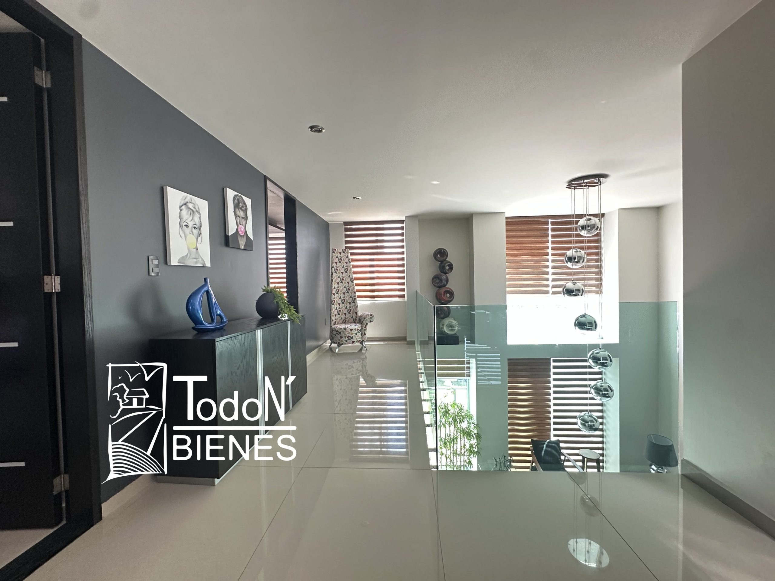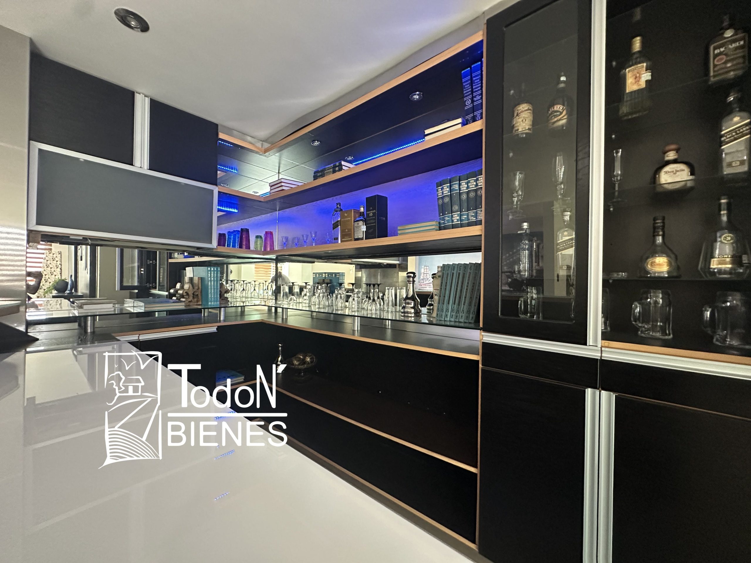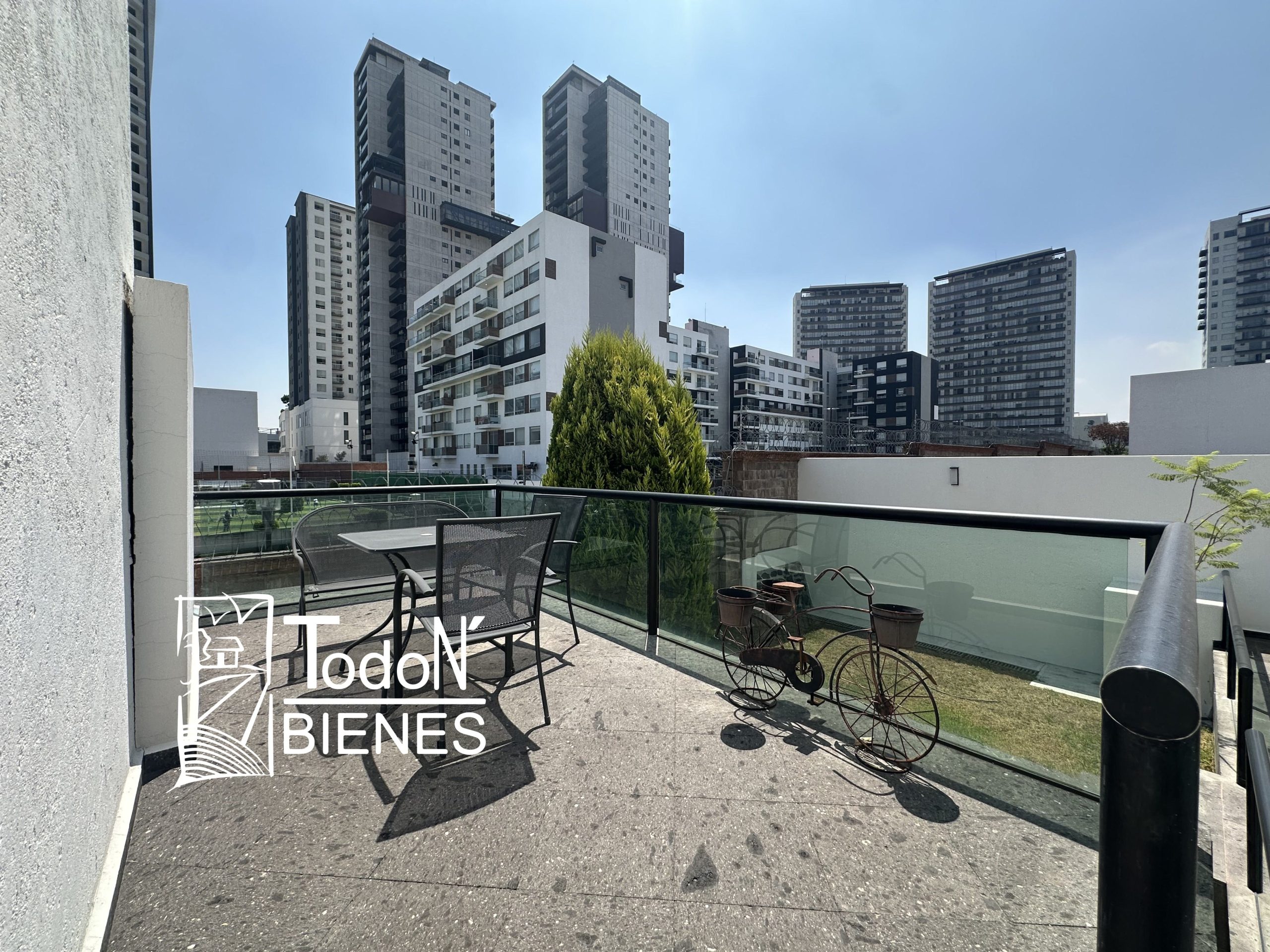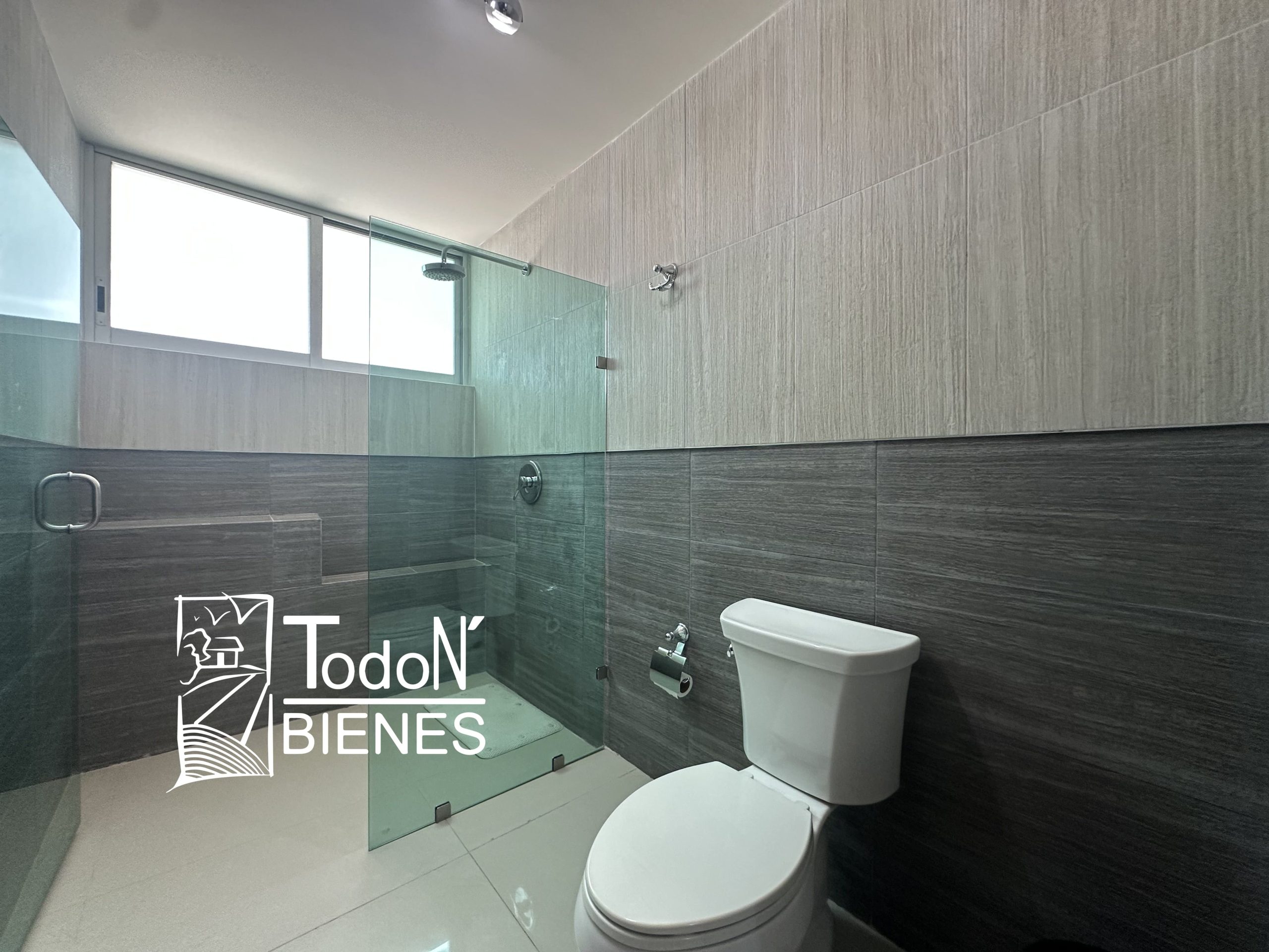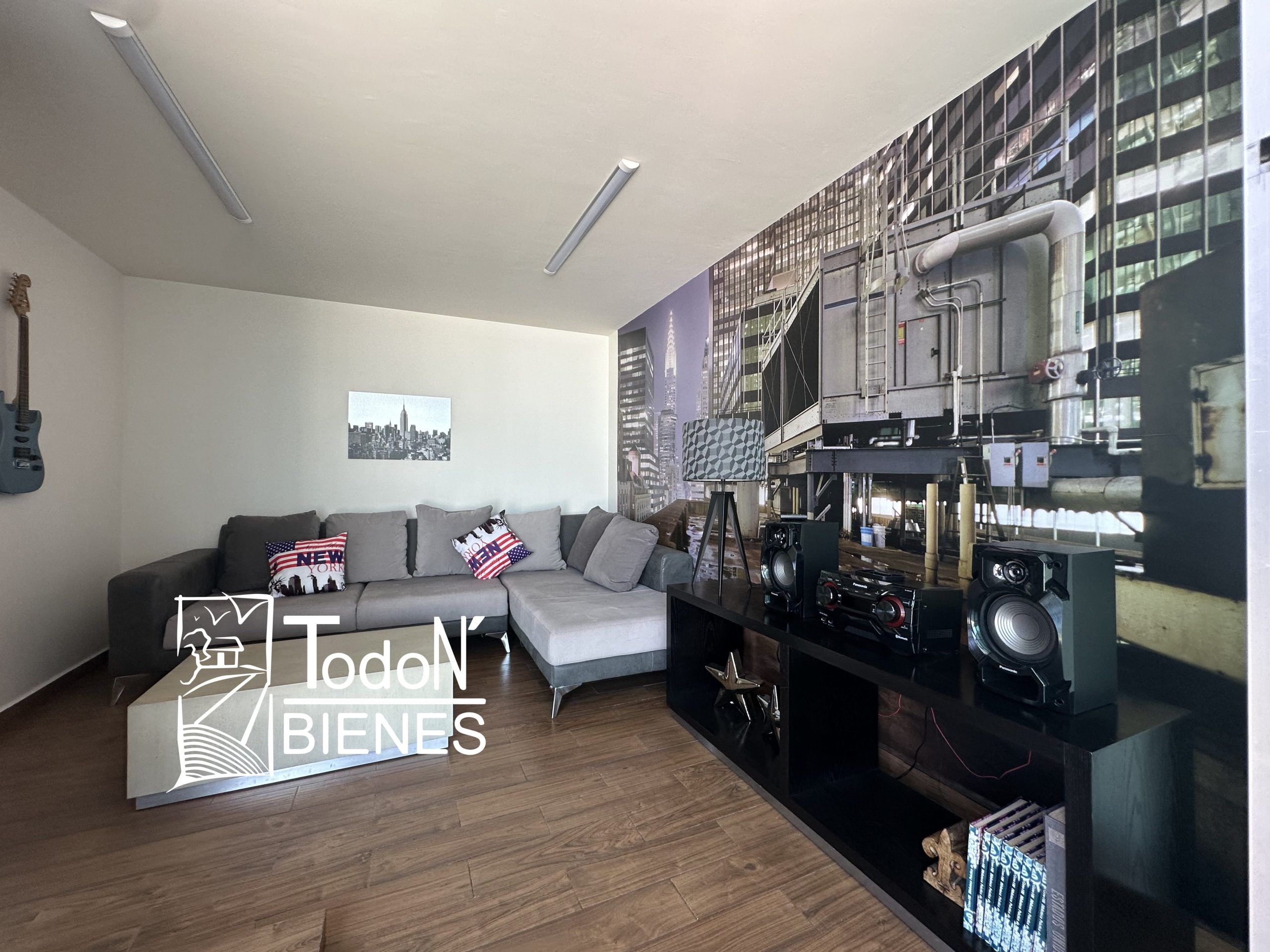 Recámara secundaria 1 con closet, recámara secundaria 2 con closet, baño completo compartido, bar, sala de TV con balcón.