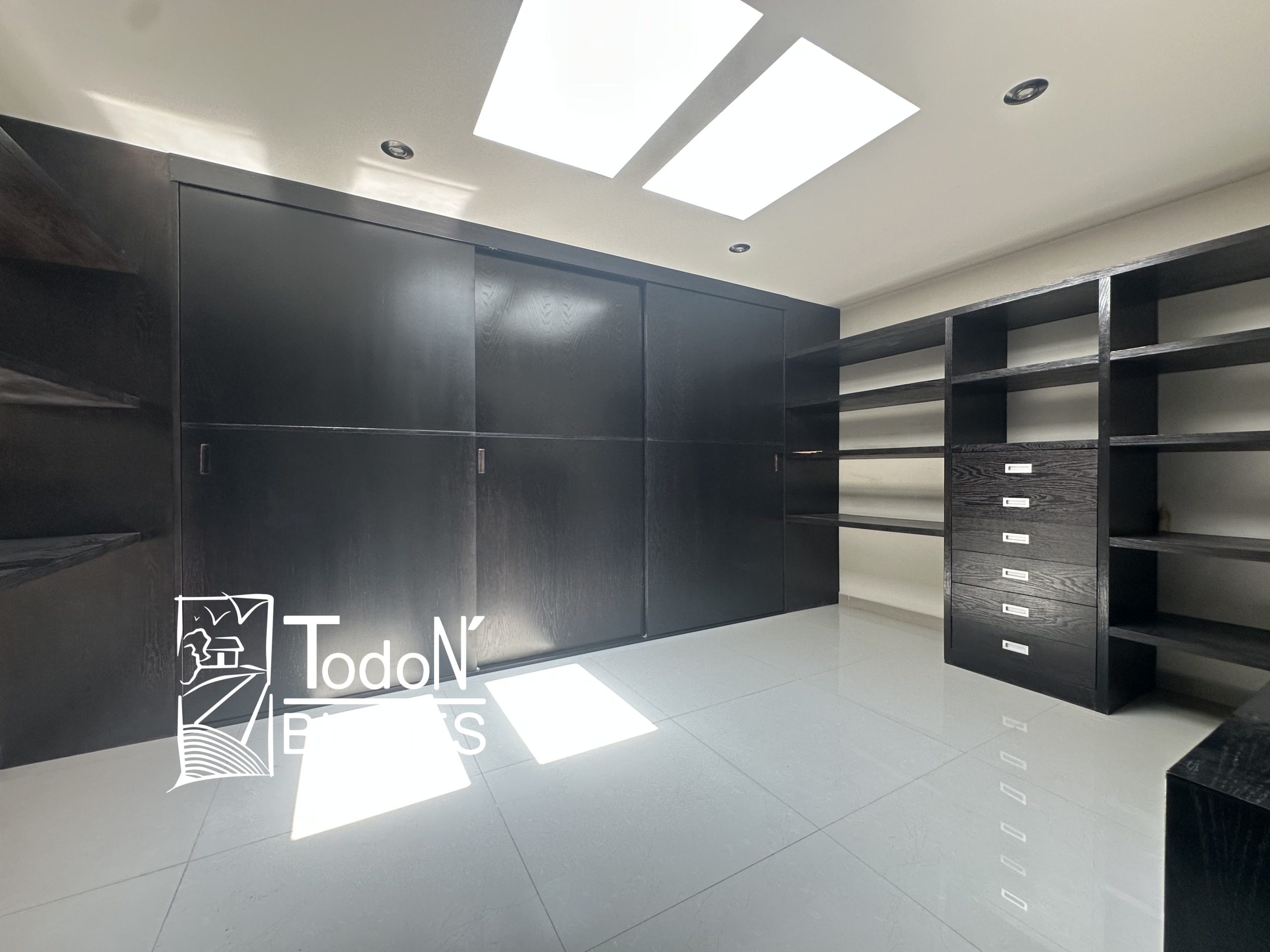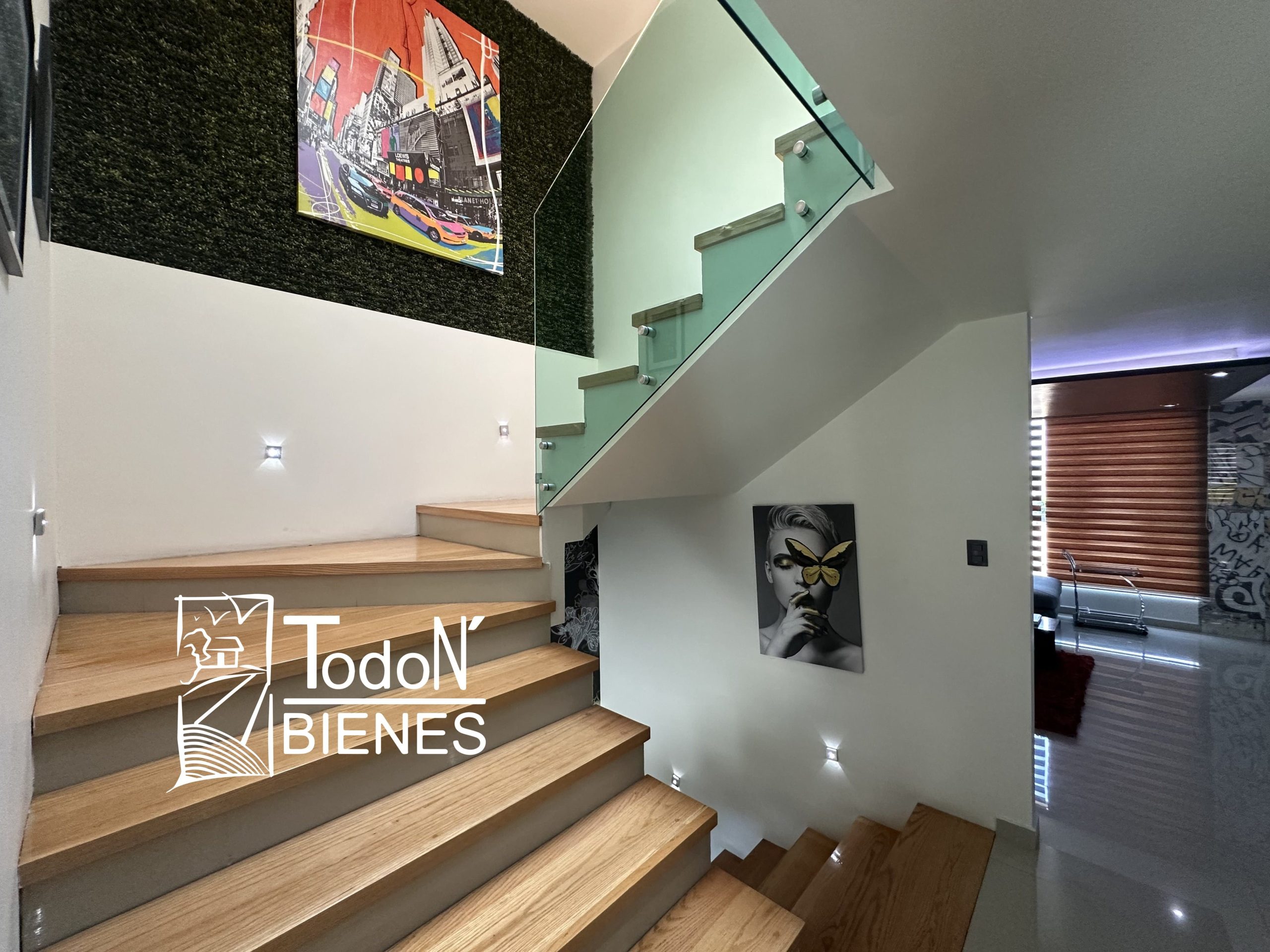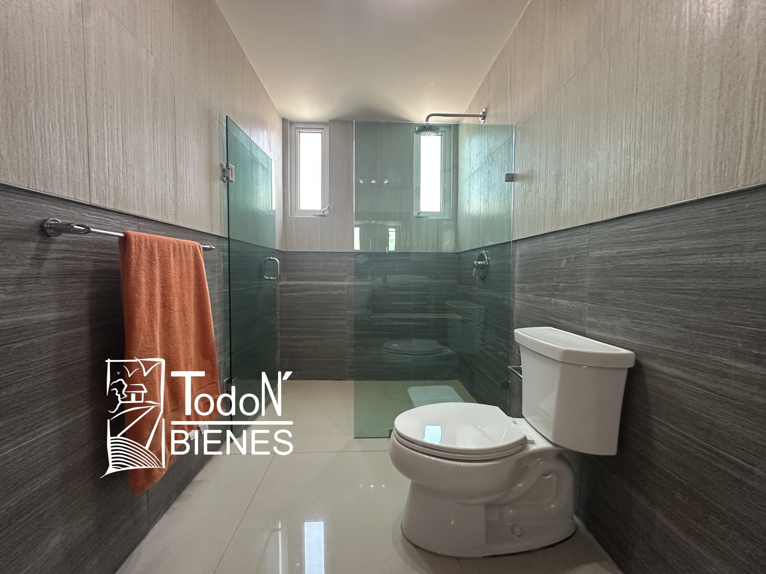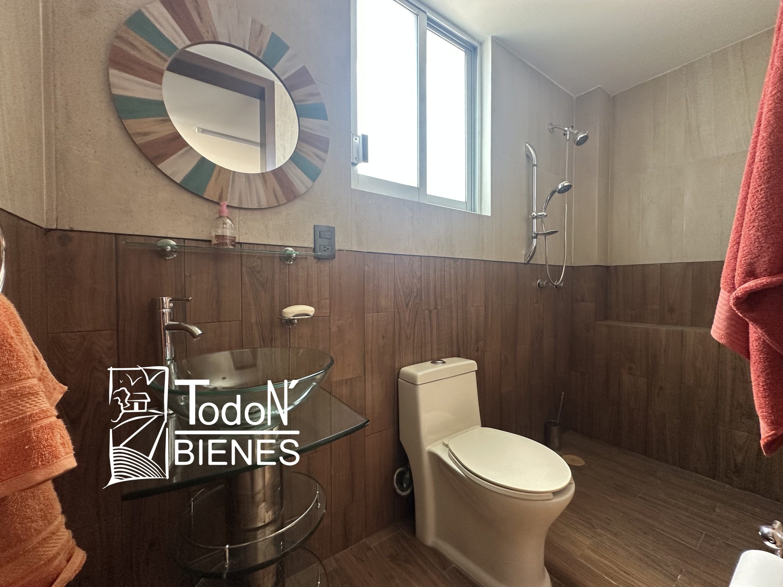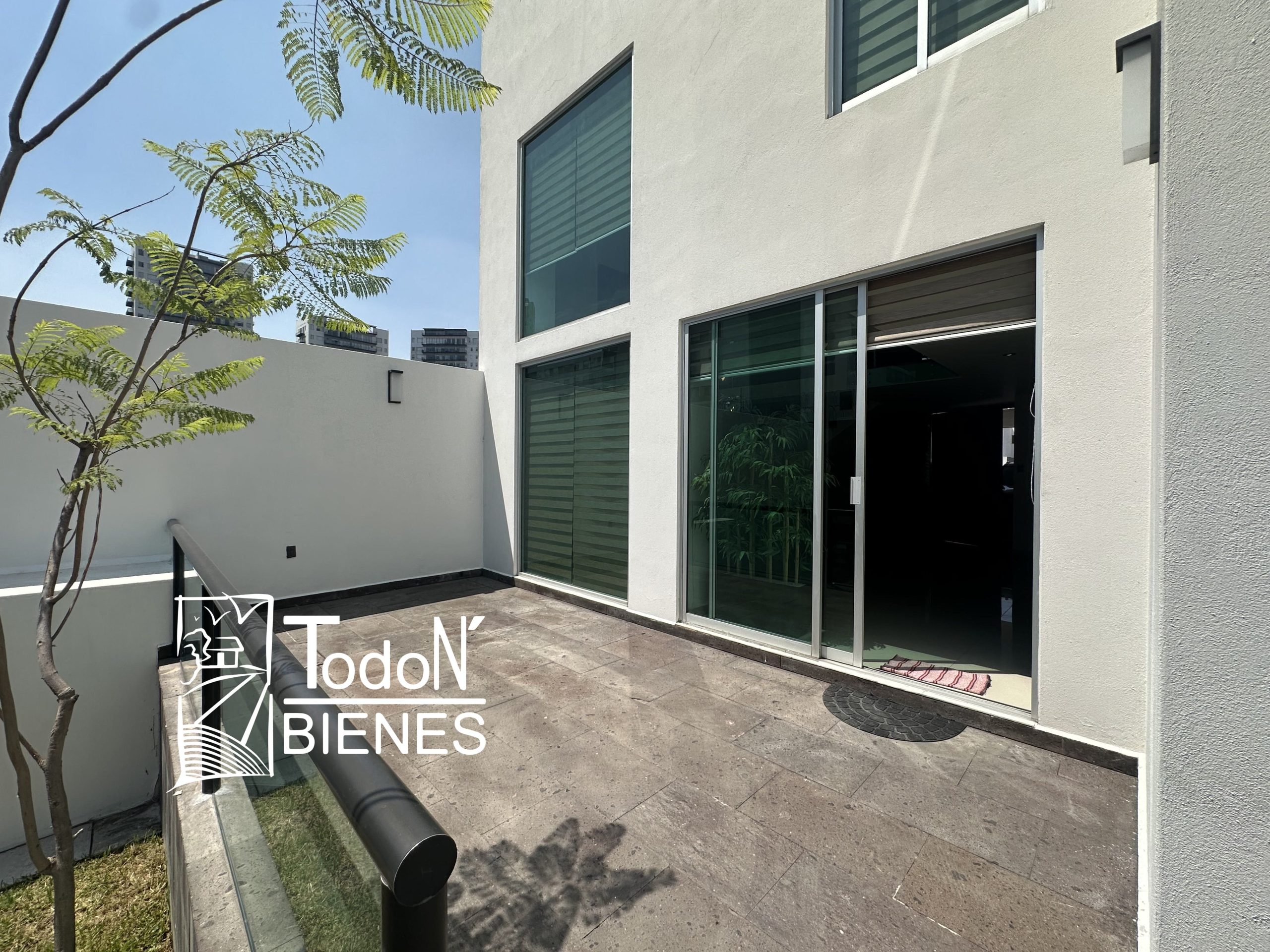 Recámara secundaria 1 con closet, recámara secundaria 2 con closet, baño completo compartido, bar, sala de TV con balcón.