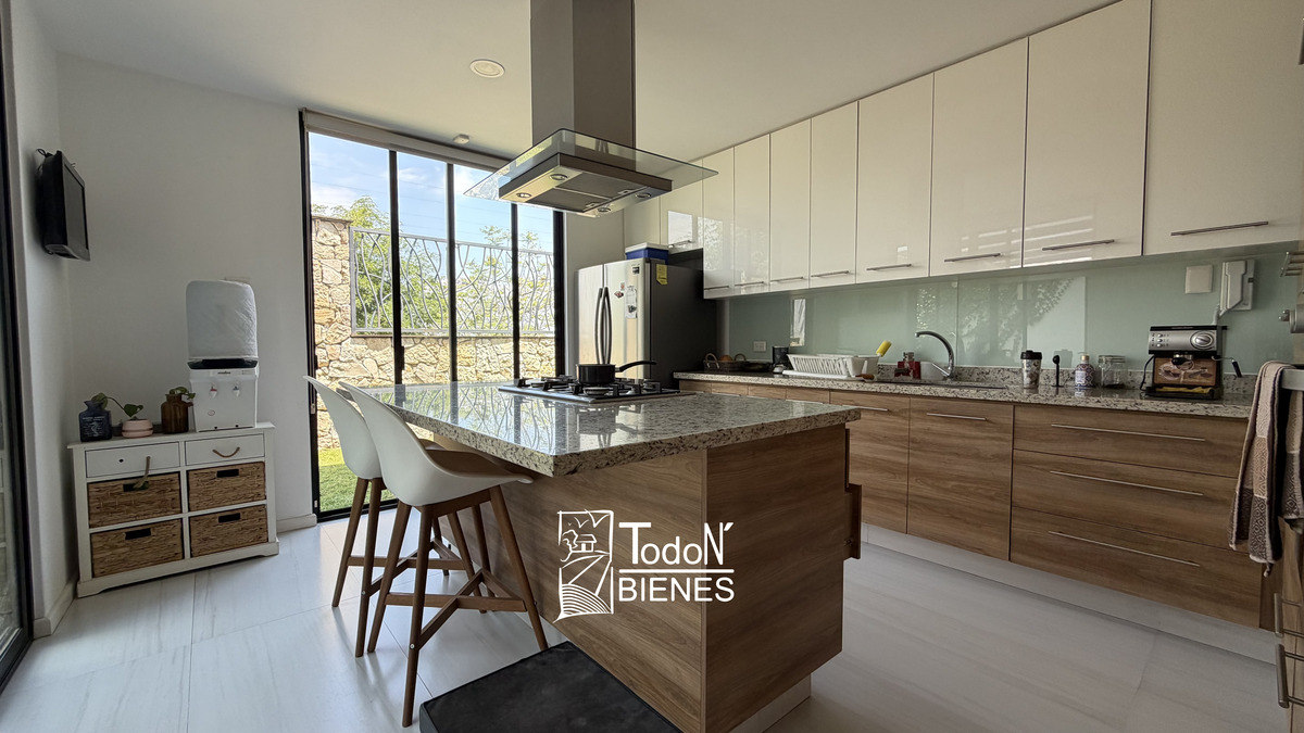 - Cocina equipada con isla, alacena y placa de granito