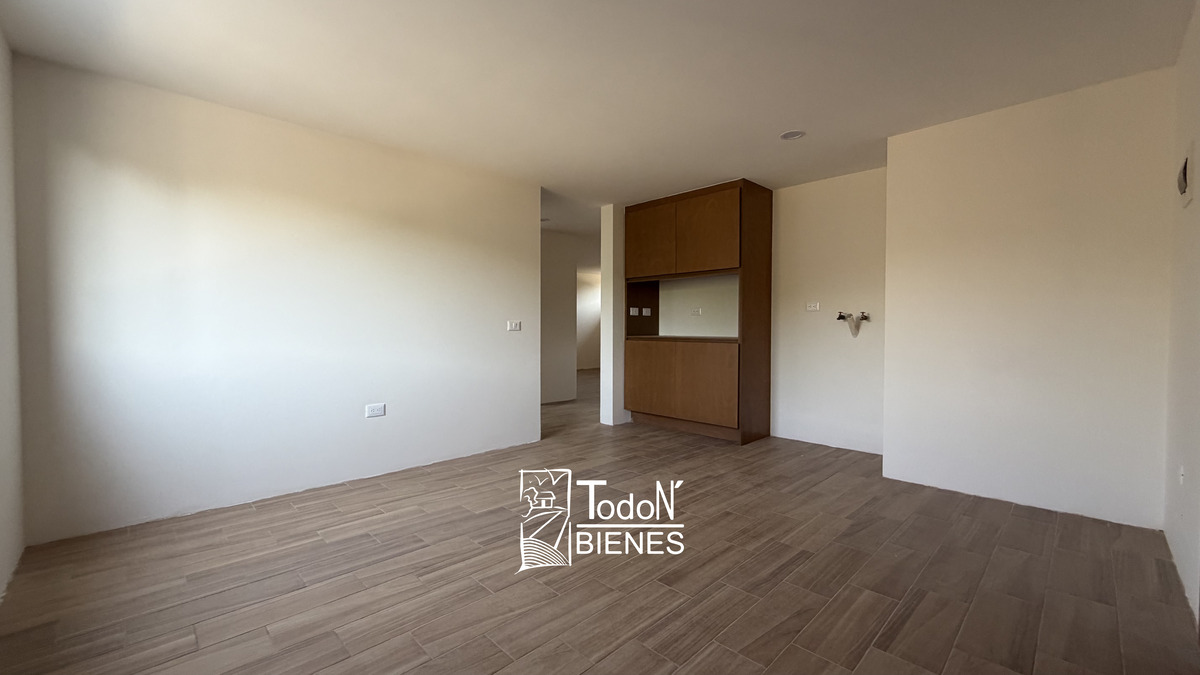 Sala comedor con terraza, cocina equipada con barra desayunador, alacena, 2 recámaras con closet, baño completo, área de lavado y 2 lugares de estacionamiento.